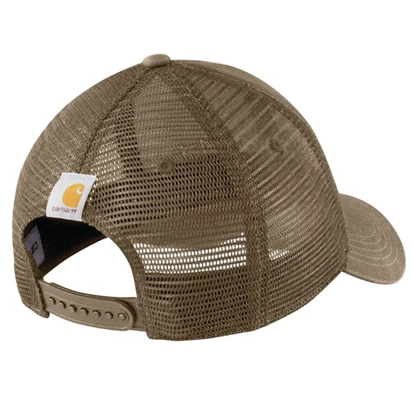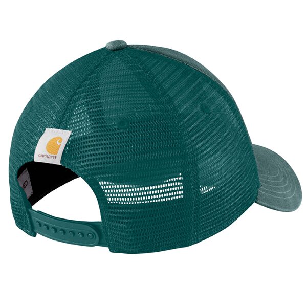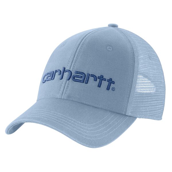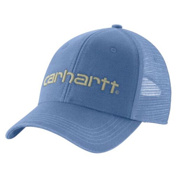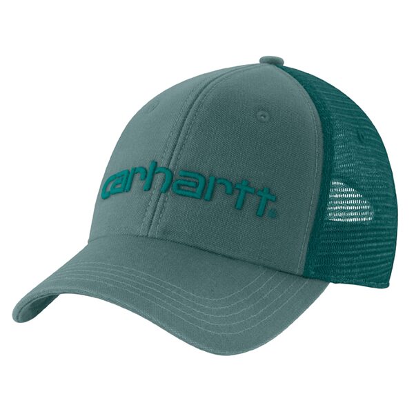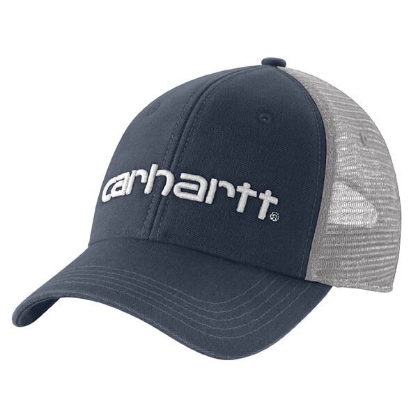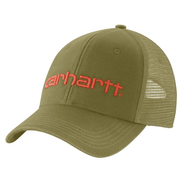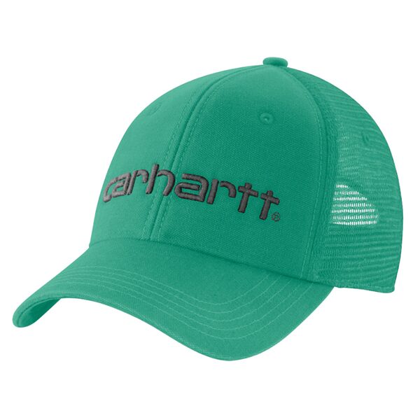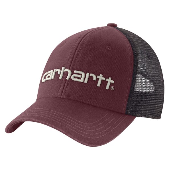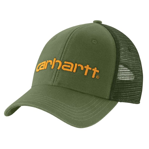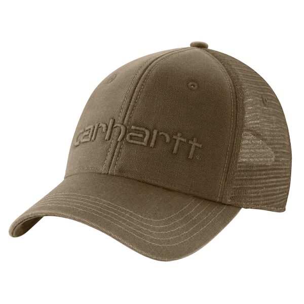 Finish your workwear attire with this canvas cap with the Carhartt logo embroidered on the front. This cap will aid in shielding your head and eyes from glare, wind, or dust at the job site. It also helps in absorbing and managing perspiration with its sweat-wicking sweatband. This cap is made from cotton-washed canvas and polyester. It comes with a mesh back, and structured high-profile cap, and a pre-curved visor. It also has an adjustable fit with plastic closure and the Carhartt proudly embroidered on the front. This canvas mesh-back cap with a logo graphic was formerly known as the Dunmore Cap.
