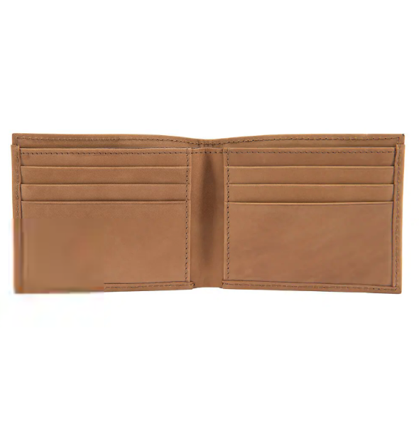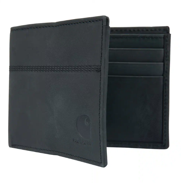 To keep your bills and cards organized, here is the saddle leather bifold wallet from Carhartt. It has the iconic Carhartt blanket stripe liner and the Carhartt label on the front. This bifold wallet comes with six card pockets and one billfold.