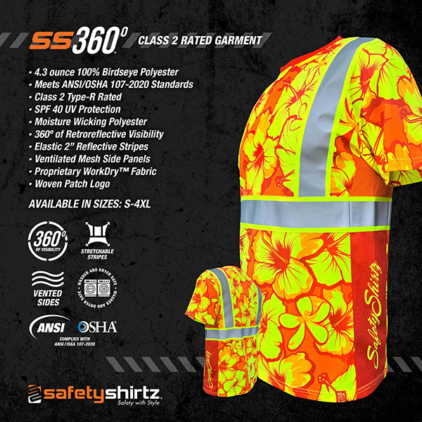 Our SS360 t-shirts are designed for those hot days when you need to stay cool and visible. Built with moisture-wicking performance polyester, these shirts do a great job of pulling sweat away from your body, leaving you dry even in the worst heat. With UPF 40 UV protection, you’re shielded from the sun’s harmful rays, so you can focus on getting the job done, not on sunburns. Plus, we added mesh side panels to provide extreme ventilation, keeping you cool when the workday really heats up.