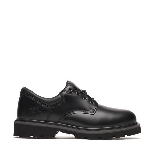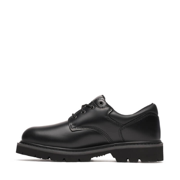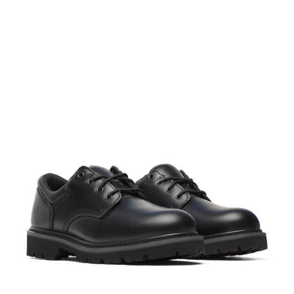 When your job requires you to look like a leader and still perform like the hardest-working member of your team, these classic leather EH oxfords with steel safety toes are at your service. Goodyear storm welt construction with an oil-resisting EVA lug outsole provide durability and extra traction, while the smooth, high-shine leather upper of these ASTM F2413-11-rated oxfords pass any inspection.